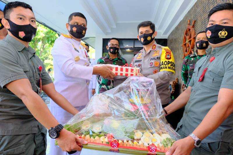 Kapolda bersama para pejabat utama Polda Sulsel datang dan langsung ke Rumah Dinas (Rumdis) Danlantamal VI dengan membawa kue ulang tahun dan nasi tumpeng. “Kami atas nama Kepolisian Daerah Sulawesi Selatan mengucapkan selamat HUT TNI ke – 75, semoga TNI semakin dicintai masyarakat serta profesional,”ujar Mantan Kapolda Sulawesi Tenggara tersebut.