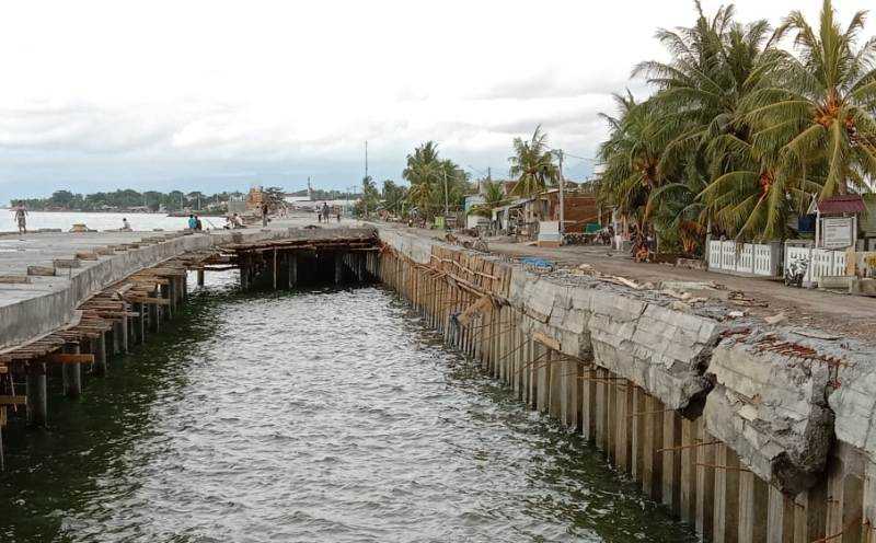 antauan Parepos Online, Jumat, 25 Desember, nampak beberapa bagian proyek sudah mulai rusak. Bagian penutup sheet pile sekitar 30 meter ambruk dihantam ombak. Sejumlah pekerja proyek itu juga masih terlihat bekerja. “Mestinya ada pemecah ombak diluarnya, kalau begini saja bentuknya. Proyek ini tidak akan bertahan lama. Apalagi pemasangan tiang pancang sheet pile kelihatan tidak rapat sehingga air masuk. Diperkirakan ombak pada bulan Januari akan lebih besar lagi,”ujar salah seorang warga yang ada dilokasi.