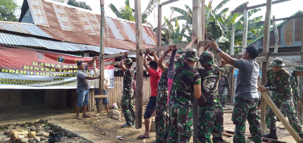 Pelaksanaan bedah rumah tidak layak huni tersebut dilakukan bersama-sama dengan masyarakat, Pemda dan ini juga merupakan bentuk sinergitas antara TNI dengan instasi terkait untuk kesejahteraan masyarakat di wilayah Kodim 1402 Polmas.