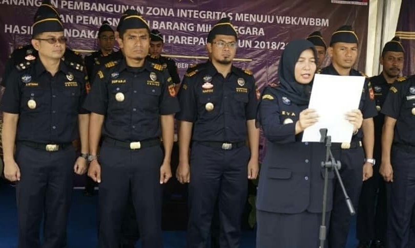 KILASSULAWESI.COM, PAREPARE — Kantor Pengawasan dan Pelayanan Bea dan Cukai TMP C Parepare mendeklarasikan ‘lawan korupsi. Hal itu terlihat dalam pesan saat mencanakan Zona Integritas (ZI) menuju Wilayah Bebas dari Korupsi (WBK) dan Wilayah Birokrasi, Bersih dan Melayani (WBBM) tahun 2020. Hal tersebut disampaikan Kepala Kantor Pengawasan dan Pelayanan Bea dan Cukai TMP C Parepare, Eva Arifah Aliyah, kemarin.