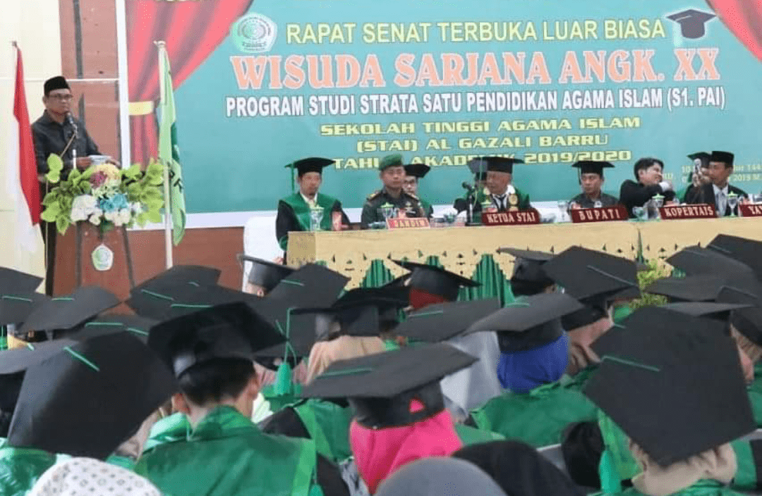 KILASSULAWESI.COM,BARRU– Bupati Barru Suardi Saleh menaruh harapan besar, agar Sekolah Tinggi Agama Islam (STAI) Al-Gazali bisa terus berbenah meningkatkan kualitas, sekaligus mampu menjadi lokomotif dan agen perubahan. Pesan dan harapan itu disampaikan Suardi Saleh saat menghadiri wisuda sarjana ke XX STAI Al-Gazali tahun akademik 2019-2020, di Bola Sobae, Kecamatan Barru, Sabtu 7 Desember 2019.