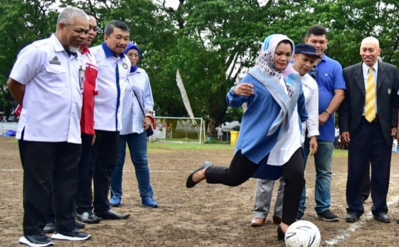 KILASSULAWESI.COM,MAKASSAR– Ketua Persatuan Wanita Olahraga Seluruh Indonesia (Perwosi) Provinsi Sulawesi Selatan, Lies F Nurdin membuka pelaksanaan babak regional Piala Pertiwi Wilayah Sulsel, yang diselenggarakan di Lapangan Karebosi, Makassar, kemarin. Di hadapan para pesepakbola wanita U-23 yang mengikuti penyisihan ini, Lies nampak sangat bersemangat dan antusias, meskipun lokasi penyelenggaraan sempat diguyur hujan sebelumnya.