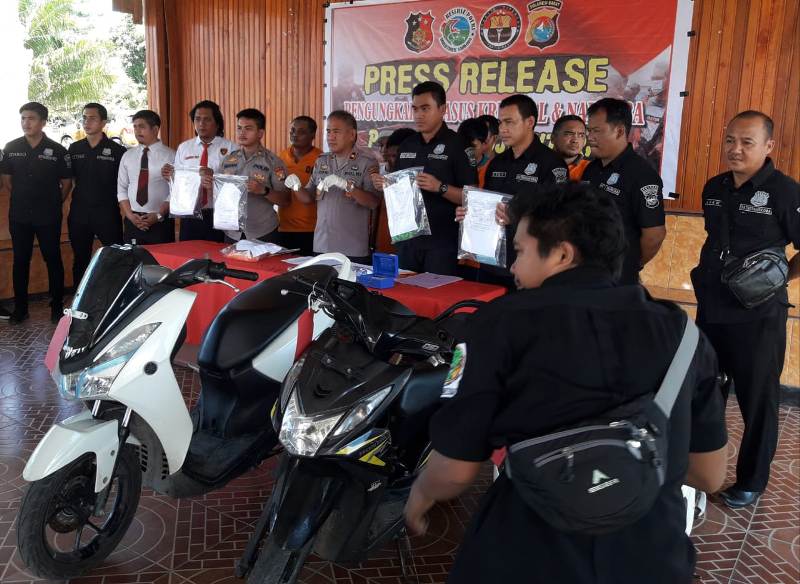 Pelaku melakukan aksinya lintas provinsi yang setelah dilakukan introgasi telah melakukan perbuatan kriminal lain seperti Curanmor sebanyak 18 kali diberbagai tempat sejak tahun 2017. Dari tangan tersangka penipuan, polisi mengamankan barang bukti berupa 1 Unit Sepeda Motor Merk Yamaha Type Lexi Warna Putih tanpa Nomor Polisi dan menyangka pelaku dengan Pasal 378 Subs Pasal 372 KUHPidana dengan Ancaman Hukuman 4 tahun penjara. Sedangkan untuk pelaku penyalahgunaan narkoba akan dijerat dengan Pasal 114 Ayat (1)Subs Pasal 112 Ayat (1) UU RI Nomor 35 tahun 2009 tentang Narkotika dengan ancaman Hukuman minimal 4 tahun dan paling tinggi 20 tahun penjara. (bur)