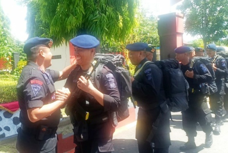 KILASSULAWESI.COM, PAREPARE–Personel Brimob Batalyon B Pelopor Polda Sulsel sudah tiba di Parepare. Mereka berjumlah 50 personel disambut di Mako Brimob Parepare setelah empat bulan lamanya BKO di Papua. Puluhan personel tersebut dipimpin Danyon B Pelopor, Kompol Sapari. Dia menyebutkan, ada 200 personel Satuan Brimob Polda Sulsel yang pulang BKO di Papua. ” Sebanyak 50 personel, pasukan dari Mako Brimob B Pelopor Parepare,” katanya, belum lama ini.