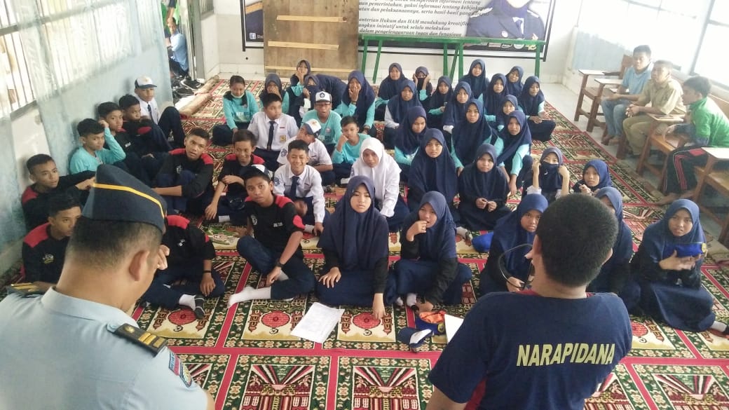 PAREPOS. CO. ID, MAJENE–Puluhan pelajar dari SMP Negeri 3 rujukan Majene yang tergabung dalam Pusat Informasi Konseling Remaja (PIK-R) Putih Biru dan Polisi Pelajar (PolJar) menyambangi rumah tahanan (Rutan) Majene.
