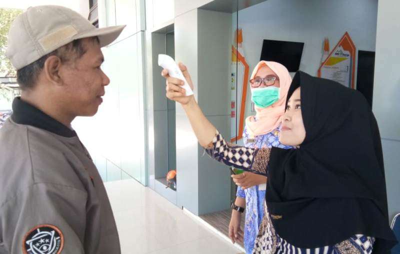 Melalui Dinas Kesehatan, telah menyiapkan petugas kesehatan untuk melakukan termo scan untuk mengecek suhu tubuh pengunjung. Dari hasil pantauan PAREPOS Online, Kamis 19 Maret, tepat didepan pintu MPP berdiri dua orang petugas kesehatan yang secara langsung mengecek suhu tubuh pengunjung satu persatu yang ingin masuk mendapatkan pelayanan.