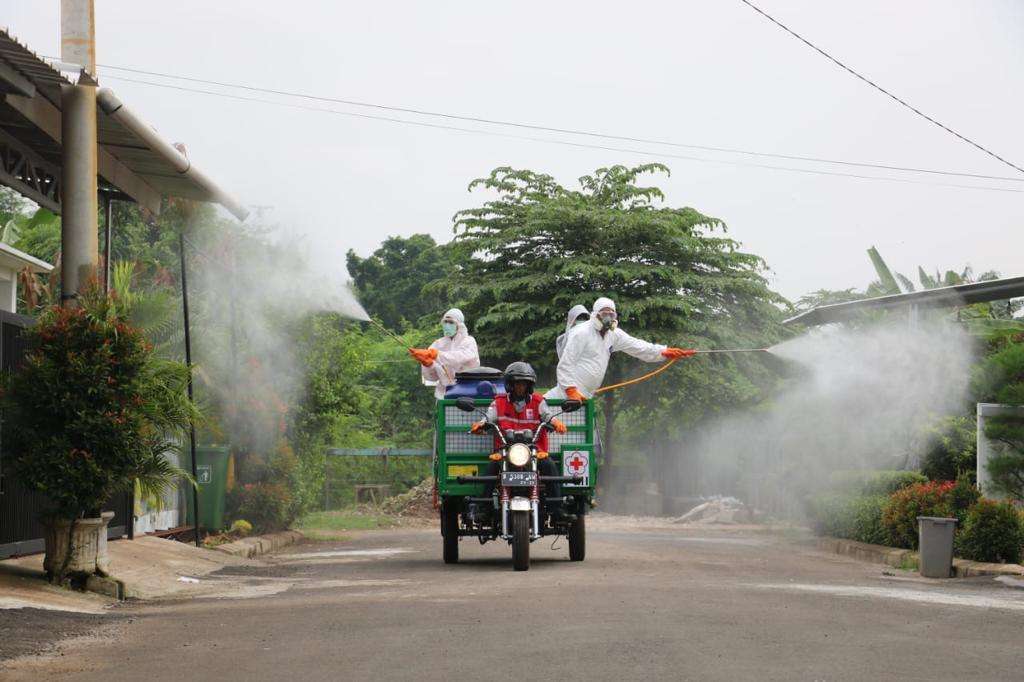 PMI memfokuskan penyemprotan disinfektan di DKI Jakarta sebagai episentrum Covid-19. Setiap hari personel PMI di seluruh DKI Jakarta melakukan 600 titik penyemprotan. Untuk mendukung kegiatan penyemprotan disinfektan, PMI Pusat telah mengirimkan 10 unit becak motor atau bentor ke markas-markas PMI di Jakarta sebagai transportasi untuk membawa peralatan penyemprotan.