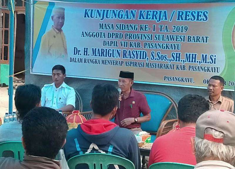 Dalam resesnya H Marigun Rasyid didampingi Staf Sekretariat DPRD Provinsi Sulawesi Barat dan disambut oleh pemerintah, tokoh masyarakat tokoh perempuan setempat, Minggu 5 Januari 2020, lalu di Kelurahan Pasangkayu. Marigun Rasyid dalam sambutannya yang disampaikan Staf Pendamping Sekretariat DPRD Provinsi Sulbar, Dedi Irawan S.Sos menjelaskan, acara terlaksana sesuai rencana untuk mengunjungi dan mendapatkan aspirasi masyarakat.
