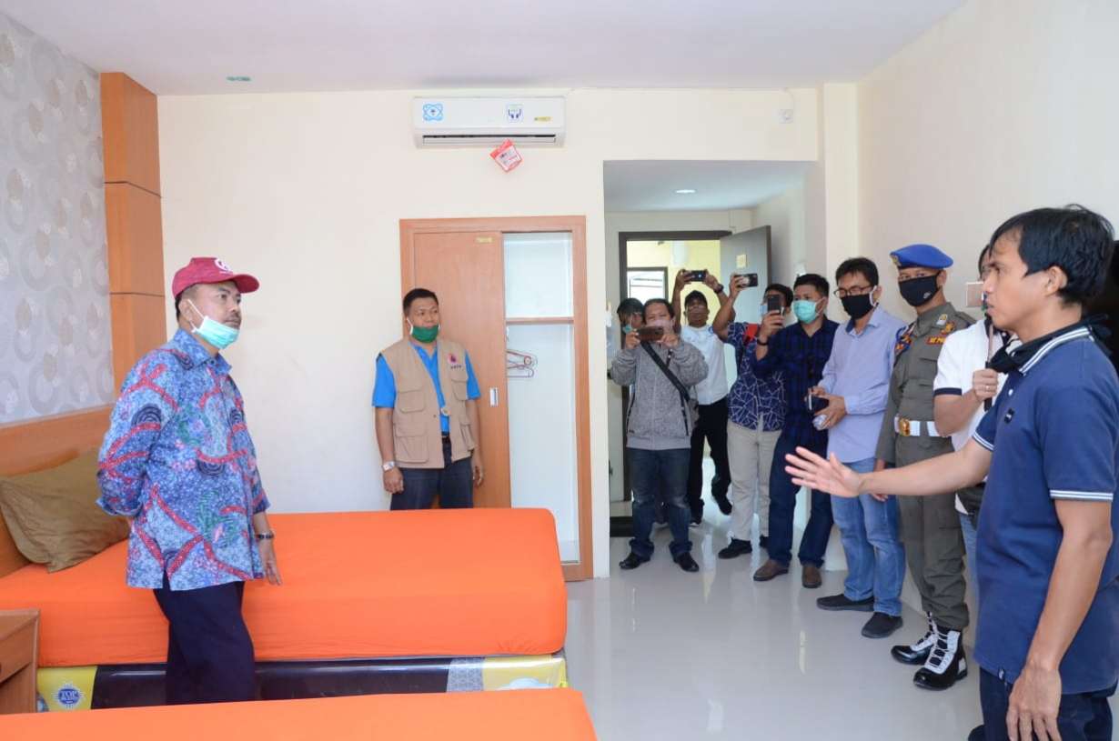 PAREPOS. CO. ID, MAJENE–Bupati Majene, Fahmi Massiara dan Wakil Bupati Majene , Lukman berserta tim gugus tugas meninjau langsung lokasi posko karantina covid 19 di gedung LPMP Sulbar, di Rangas Majene Minggu 12 April 2020. Sebanyak 40 kamar dengan fasilitas kamar tidur, toilet, AC dan TV disediakan pihak LPMP sebagai bentuk dukungan penanganan dan pencegahan covid 19 di Kabupaten Majene. Seperti ada tiga gedung yang digunakan yaitu, Grand Sendana, Tappalang dan Mamuju.