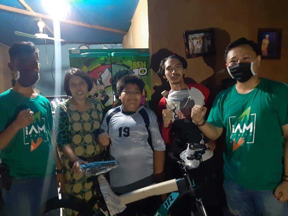 “Ada sepeda dan sembako untuk keluarga adik R, ini sebagai dukungan moril kami kepada adik R untuk tetap semangat berdagang,” ujar salah satu anggota Komunits iAM Centre, Syahban.