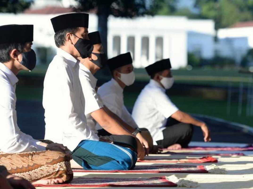 KILASSULAWESI.COM,JABAR– Presiden Joko Widodo (Jokowi) bersama dengan Ibu Negara Iriana melaksanakan salat Idulfitri 1441 H di halaman depan Wisma Bayurini, Istana Kepresidenan Bogor, Provinsi Jawa Barat, Minggu 24 Mei 2020. Presiden Jokowi dan Ibu Iriana melaksanakan salat Idulfitri berjamaah yang dipimpin oleh Ketua DKM Masjid Baitussalam Istana Kepresidenan Bogor Muhammadun pada pukul 06.32 WIB.