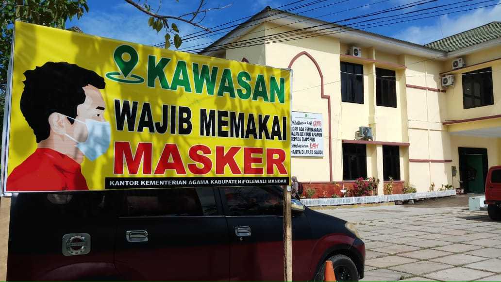 KILASSULAWESI.COM,POLMAN — Dimasa Pandemi Wabah Virus Covid-19, alat kesehatan seperti masker sudah menjadi kewajiban untuk digunakan dalam melindungi kesehatannya, terutama disaat pandemi sekarang ini. Hal itu pun diterapkan jajaran Kementrian Agama (Kemenag) Kabupaten Polman, dimana masker sudah menjadi kewajiban dipakai ketika memasuki area perkantoran.