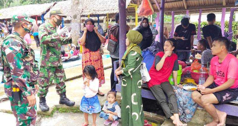 KILASSULAWESI.COM,POLMAN — Bintara Pembina Desa (Babinsa) Koramil 1402-01/Polewali Jajaran Kodim Polmas mengimbau pengunjung tempat wisata alam untuk mematuhi protokol kesehatan di Permandian Alam Kali Biru, Desa Batetangnga, Kecamatan Binuang, Kabupatem Polman, Selasa 18 Agustus, pagi tadi.