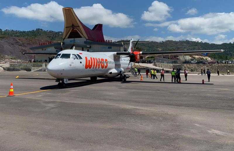 Wings Air Mendarat Perdana di Bandara Udara Buntu Kunik Toraja