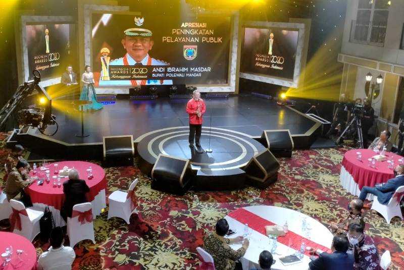 KILASSULAWESI.COM, POLMAN — Bupati Polewali Mandar (Polman), Andi Ibrahim Masdar diganjar penghargaan Indonesia Award 2020 untuk kategori Peduli Pelayanan Publik. Penghargaan untuk tokoh maupun lembaga atas dedikasi, prestasi dan konsistensinya dalam membangun negeri. Indonesia Awards kali ini bertemakan ‘Kebanggaan Indonesia’. Sebanyak 28 insan terbaik mulai dari lembaga pemerintahan dan non pemerintahan, serta perorangan atas dedikasi, prestasi, dan konsistensi dalam pembangunan negeri.