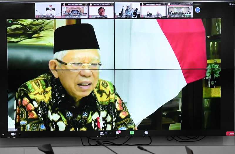 Wakil Presiden RI, Ma’ruf Amin saat memberikan sambutan secara virtual pada Penganugerahan Zona Integritas menuju WBK dan WBBM Tahun 2020, Senin 21 Desember, 2020. Penciptaan Zona Integritas tersebut ditentukan oleh sumber daya manusia (SDM) yang unggul dan berintegritas yang sangat dibutuhkan sebagai agen perubahan untuk kemajuan. “Kita perlu terus memperkuat langkah dan memperluas cakupan Zona Integritas dan menciptakan tata kelola pemerintahan yang bersih, pelayanan publik yang optimal, kapasitas birokrasi yang andal dan akuntabel, serta SDM aparatur yang profesional,” ujarnya.