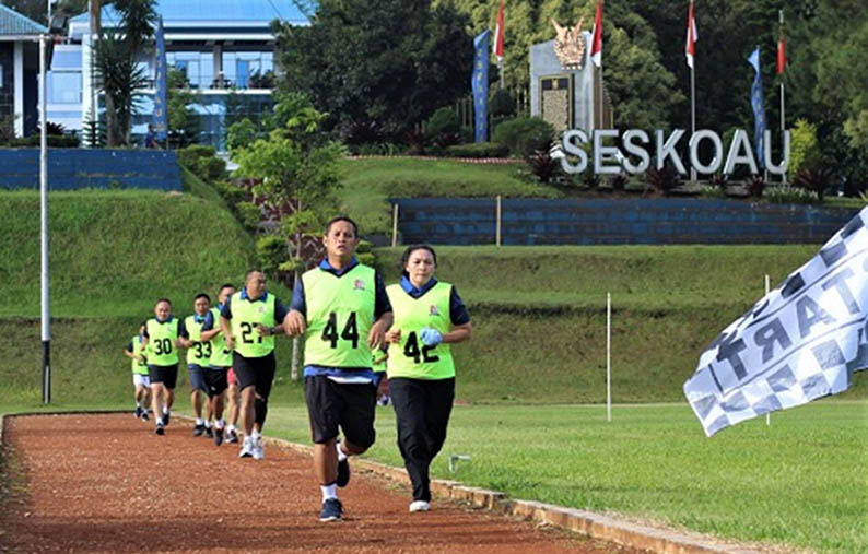 BANDUNG BARAT – Untuk mengukur sejauh mana kebugaran fisik selama melaksanakan pendidikan di Seskoau, Perwira Siswa (Pasis) Sesau angkatan Ke-15 menjalani tes kesamaptaan jasmani di Lapangan Widya Krida, Seskoau, Lembang. Selasa (6/4/2021).