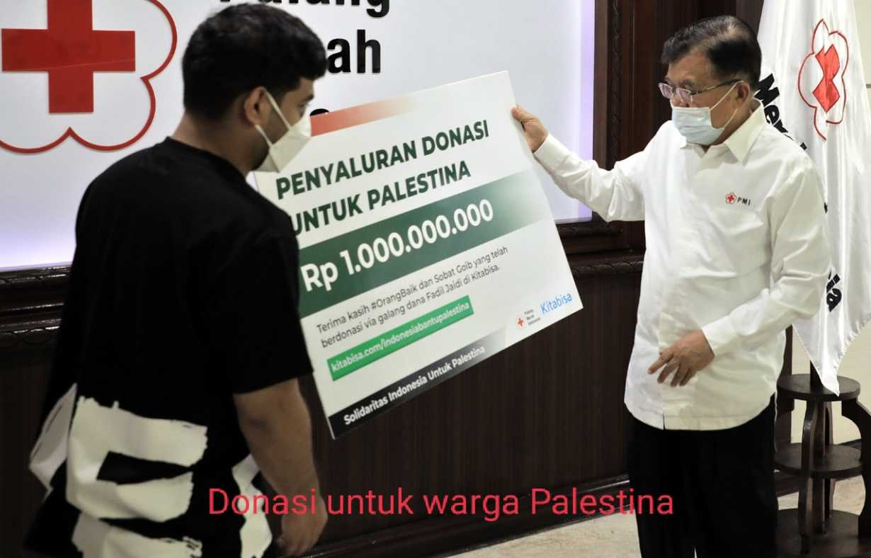 PAREPOS CO.ID,JAKARTA– Palang Merah Indonesia (PMI) akan menyalurkan donasi publik Rp 1 miliar ke rakyat Palestina secepatnya. Dana tersebut rencananya akan dimanfaatkan untuk membantu berbagai kebutuhan rakyat Palestina yang terdampak konflik. Donasi kemanusiaan yang dihimpun melalui urun dana kitabisa.com oleh publik figur Fadil Jaidi tersebut diterima Ketua Umum PMI Jusuf Kalla (JK) di Markas Pusat PMI, Jalan Gatot Subroto, Rabu 19 Mei 2021.