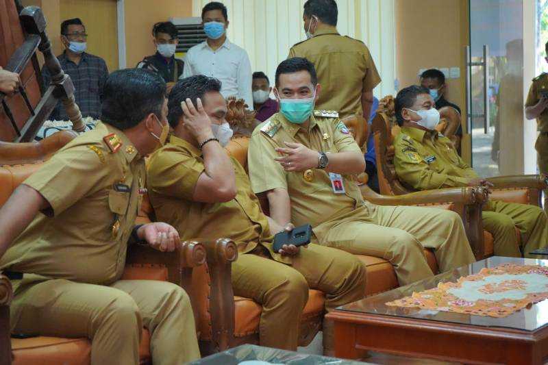 Empat kepala daerah penerima bantuan hibah. Nampak Bupati Pangkep bersama Wabup Enrekang ditengah kegiatan.