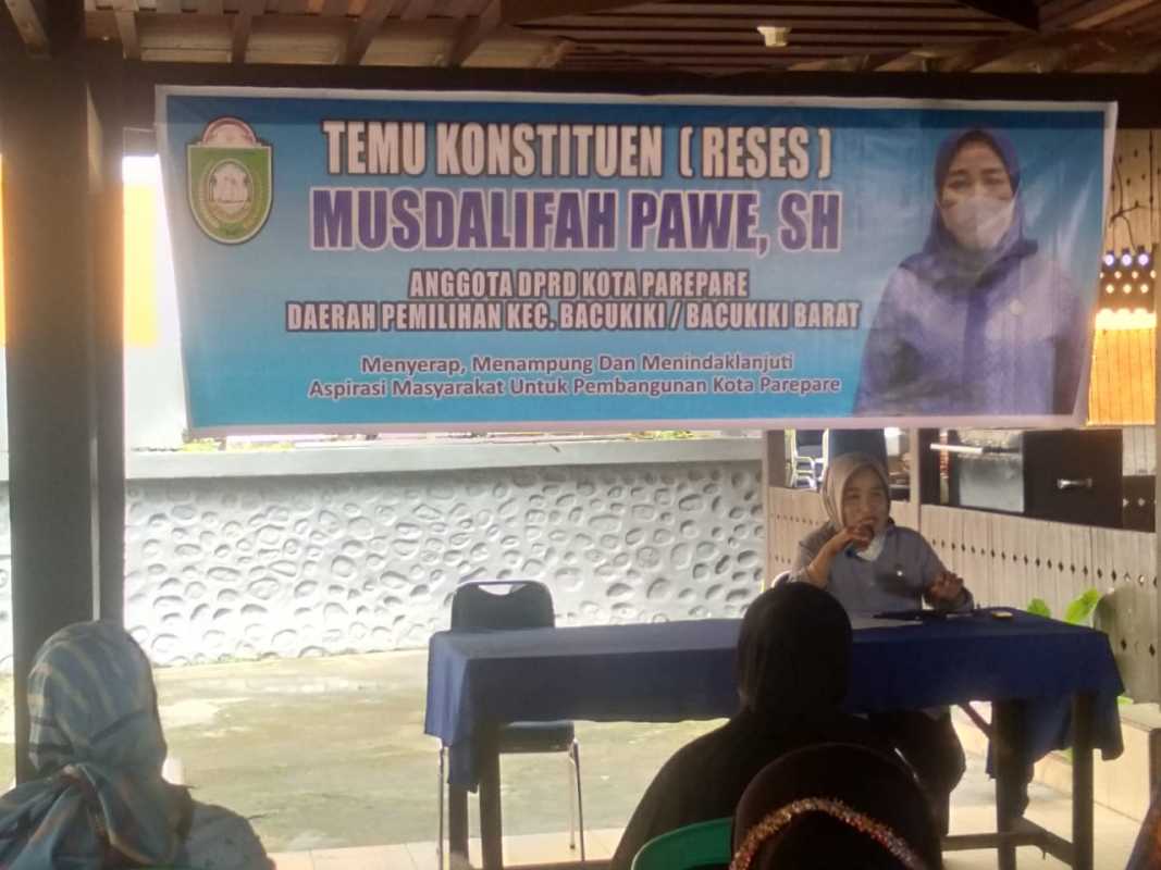 KILASSULAWESI.COM, PAREPARE — Anggota DPRD Parepare, Hj Musdalifah Pawe menggelar reses untuk menjaring aspirasi konstiten di daerah pemilihan Bacukiki-Bacukiki Barat, Kota Parepare pada Sabtu, 8 Mei 2021.