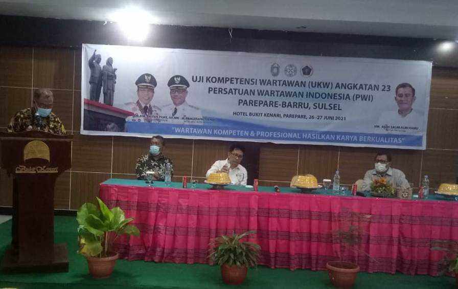KILASSULAWESI.COM,PAREPARE– Wali Kota Parepare, Dr HM Taufan Pawe SH MH diwakili Wakil Wali Kota Parepare, H Pangerang Rahim mengaku atas nama pemerintah dan masyarakat Kota Parepare menyambut gembira atas pelaksanaan Uji Kompetensi wartawan (UKW) yang dilaksanakan PWI Sulsel di Kota Cinta Habibie Ainun, Parepare. Pemerintah Kota Parepare, kata mantan Anggota DPRD Sulsel itu, melalui UKW dapat meningkatkan kompetensi dan keahlian wartawan sehingga menambah kualitas. ” Maka, wartawan profeisonal diminta agar menjujung tinggi Kode Etik Jurnalistik (KEJ) sesuai dengan UU No 40 Tahun 1999. Selain itu, dituntut agar meningkatkan kemampuan dan kompetensi, dan diharapkan dapat meningkatkan SDM di bidang pers,” ujarnya dalam pembukaan UKW Angkatan ke-23 di Kota Parepare.