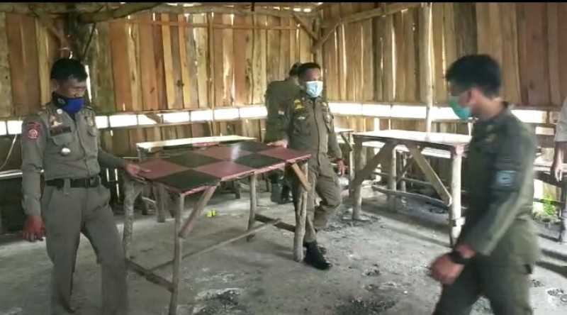 Petugas pun melakukan pembongkaran terhadap cafe yang diketahui dibangun tanpa mengantongi Izin Mendirikan Bangunan (IMB),