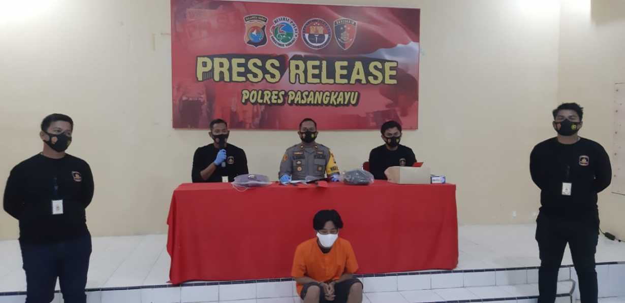 Hal tersebut terungkap saat Wakapolres Pasangkayu Kompol Ade Chandra C.Y didampingi Kasat Reskrim AKP Pandu Arief Setiawan S.H, S.I.K dan Kanit Pidum Sat Reskrim IPDA Firman Sanusi S.H pimpin Press Release di Ruangan Media Center Polres Pasangkayu, Sabtu 12 Juni, siang.