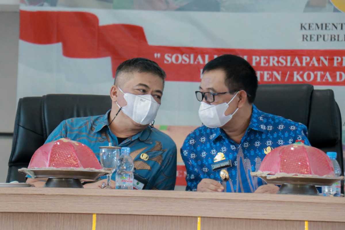 Wakil Bupati Barru Aska Mappe didampimgi Sekretaris Daerah (Sekda) Barru Dr. Abustan, AB menyampaikan terima kasih kepada Kementerian Sosial dan Dinas Sosial Provinsi Sulawesi Selatan yang menyempatkan diri datang di Barru untuk kegiatan ini.