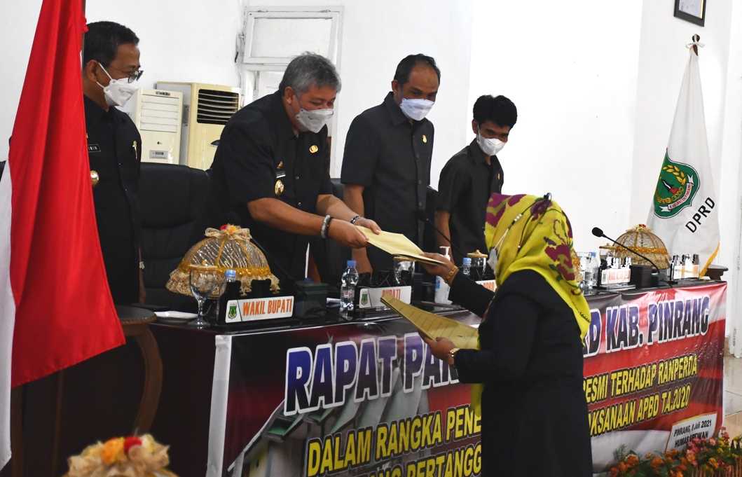 Diketahui delapan fraksi di DPRD Pinrang menyetujui raperda pertanggungjawaban pelaksanaan APBD tahun anggaran 2020 dibahas ke tingkat selanjutnya. (mnr/B)