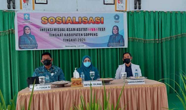 KILASSULAWESI.COM, SOPPENG — Tim Penggerak PKK Kabupaten Soppeng menggelar sosialisasi Inspeksi Visual Asetat (IVA) Test tingkat Kabupaten Soppeng tahun 2021, di Baruga Rujab Bupati Soppeng, Jumat, 2 Juli 2021.