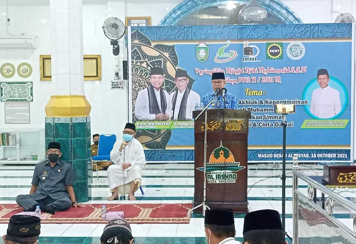 Meneladani sifat Rasulullah SAW diungkapkan Wali Kota Parepare, Dr HM Taufan Pawe saat menghadiri Peringatan Maulid Rasulullah SAW di Masjid Al Irsyad di Jalan Andi Sinta, Kelurahan Ujung Baru, Kecamatan Soreang Kota Parepare, Senin 18 Oktober 2021.