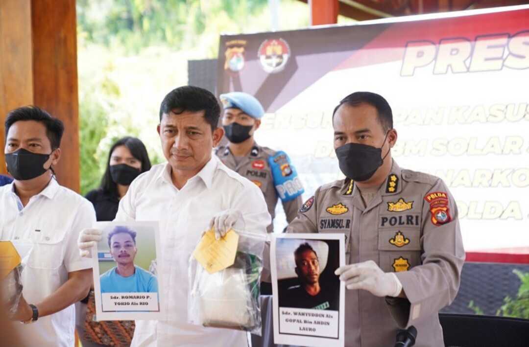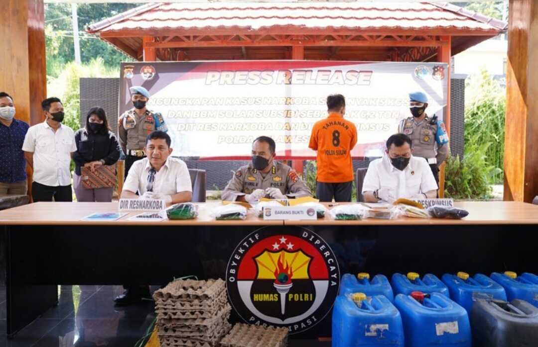 dan Direktorat Reserse Kriminal Khusus Polda Sulbar berhasil mengungkap kasus peredaran Narkoba dan penimbunan Bahan Bakar Minyak (BBM) jenis Solar bersubsidi. Hal itu terungkap dalam jumpa pers yang dilaksanakan, Rabu 13 April 2022 di Mapolda Sulbar.