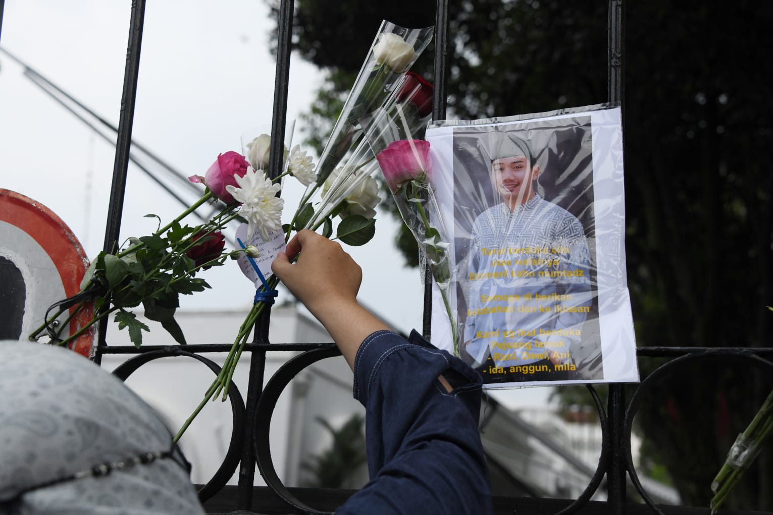 Gilang tak sendiri, dia mengajak rekannya yang lain, Erika, 25, warga Jakarta. Mereka rela mengantre di pintu masuk Gedung Pakuan untuk bertakziah.