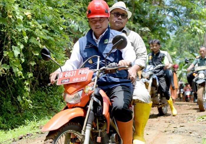 CIAMIS, KILASSULAWESI — Wakil Gubernur Jawa Barat Uu Ruzhanul Ulum meninjau sekaligus menyerahkan bantuan kepada warga terdampak bencana tanah longsor di Desa Sukamaju, Kecamatan Cihaurbeuti, Kabupaten Ciamis, Selasa (13/9/2022).
