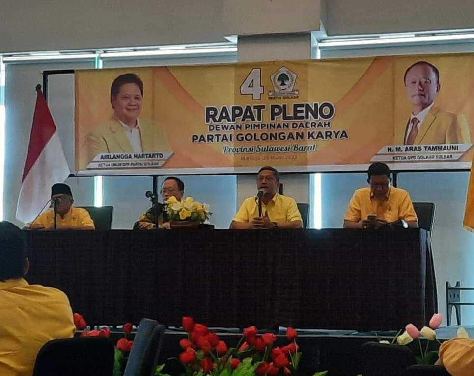 MAMUJU, KILASSULAWESI– Dewan Pimpinan Daerah (DPD) I Partai Golkar Sulbar menggelar rapat pleno dalam rangka meresuffle kepengurusan DPD Partai Golkar. Rapat dipimpin langsung Ketua DPD Golkar Sulbar HM Aras Tammauni didampingi Ketua Harian Irwan SP. Pababari.