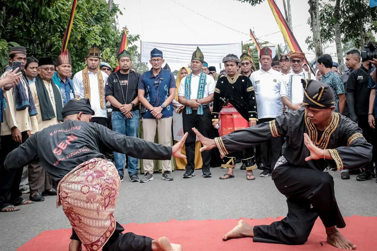 “Hari ini kita melihat pariwisata berkelas dunia. Dua tahun berturut-turut kita melihat kekayaan alam Sijunjung, kali ini kita merasakan keragaman dan keunggulan budaya dari Desa Wisata Sijunjung,” kata Sandiaga.