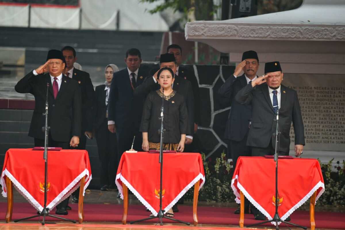 JAKARTA, KILASSULAWESI– Ketua MPR RI, Bambang Soesatyo membacakan naskah Pembukaan Undang-Undang Dasar Negara Republik Indonesia Tahun 1945 dalam Upacara Peringatan Hari Kesaktian Pancasila di Monumen Pancasila Sakti, Lubang Buaya, Jakarta. Dipimpin Presiden Joko Widodo sebagai Inspektur Upacara. Sementara Ketua DPR RI Puan Maharani sebagai pembaca teks Pancasila.