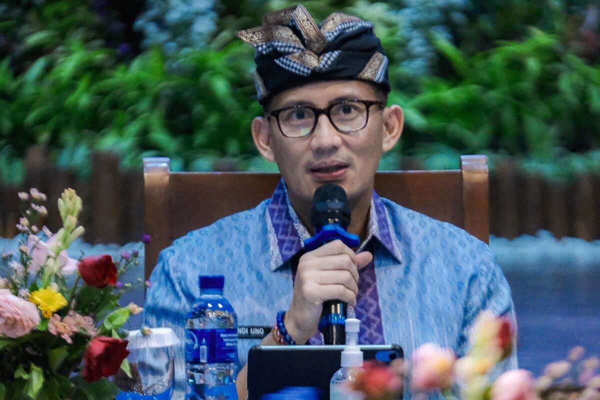 MOJOKERTO, KILASSULAWESI- Menteri Pariwisata dan Ekonomi Kreatif/Kepala Badan Pariwisata dan Ekonomi Kreatif (Menparekraf) Sandiaga Salahuddin Uno memberikan dana Dukungan Pengembangan Usaha Parekraf (DPUP) bagi lima desa wisata di Jawa Timur.