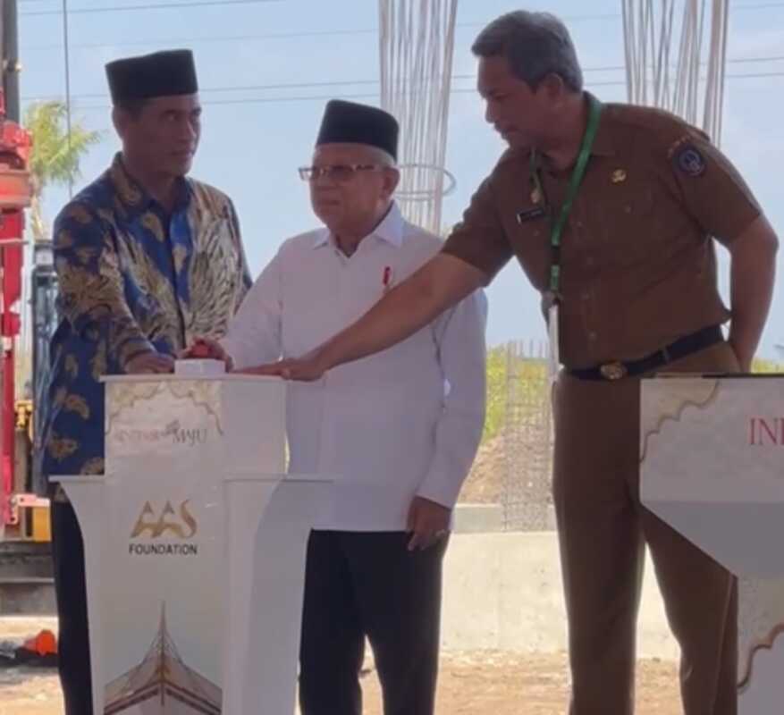 MAKASSAR, KILASSULAWESI — Hari ini, Senin 9 Oktober 2023 Wakil Presiden (Wapres) RI Ma’ruf Amin melakukan peletakan batu pertama atau ground breaking sebagai tanda dimulainya pembangunan Masjid Hj. Andi Nurhadi dan AAS International Hospital di Kota Makassar, Sulawesi Selatan.