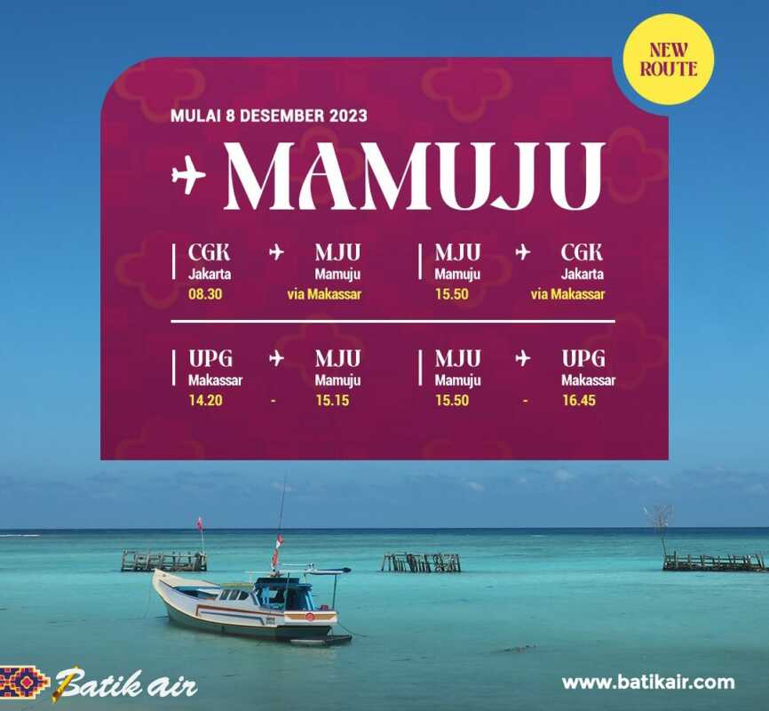 MAMUJU, KILASSULAWESI- Maskapai penerbangan Batik Air, bagian dari Lion Group, mengumumkan destinasi terbaru yang menghubungkan Mamuju, Sulawesi Barat-Makassar Sulawesi Selatan.