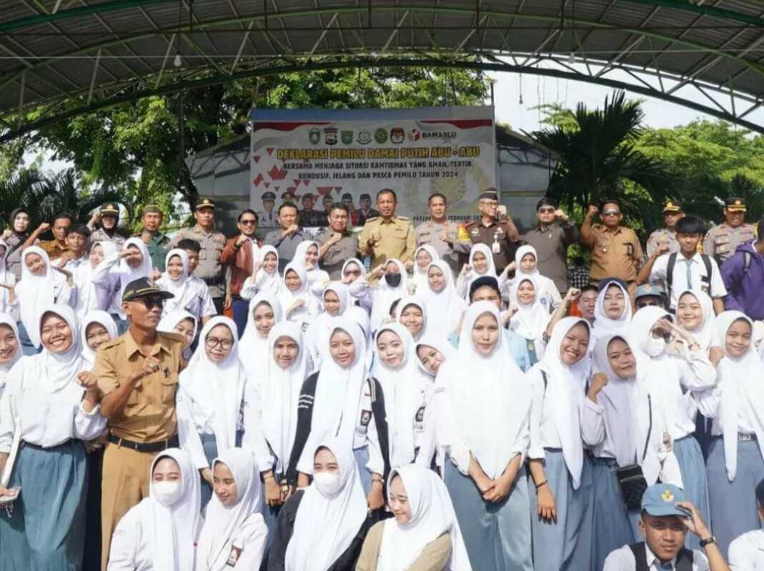 PAREPARE, KILASSULAWESI– Pj Wali Kota Parepare, Akbar Ali memimpin upacara Deklarasi Pemilu Damai Putih Abu-abu di Lapangan Andi Makkasau, Parepare, Senin, 5 Februari 2024.