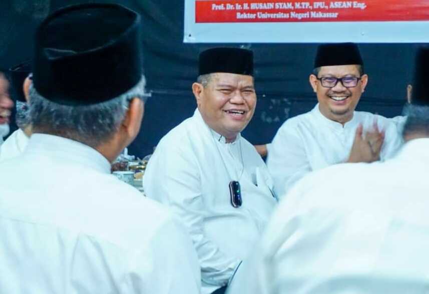 Di tengah ribuan jamaah yang melaksanakan salat ied, tampak Prof Husain Syam yang juga Ketua Kerukunan Keluarga Mandar Sulawesi Barat (KKMSB) duduk berdampingan di shaf depan bersama Ketua Ikatan Keluarga Alumni (IKA) UNM, Nurdin Halid.