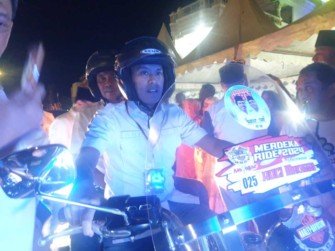 PAREPARE, KILASSULAWESI– Berboncengan menggunakan motor gede Harley Davidson pasangan bakal calon Wali Kota Parepare dan Wakil Wali Kota Parepare, Andi Nurhaldin Nurdin Halid dan Taqyuddin Djabbar (ANH-TQ), Kamis, 29 Agustus 2024, sekitar pukul 08.30 Wita menuju Kantor Komisi Pemilihan Umum (KPU).
