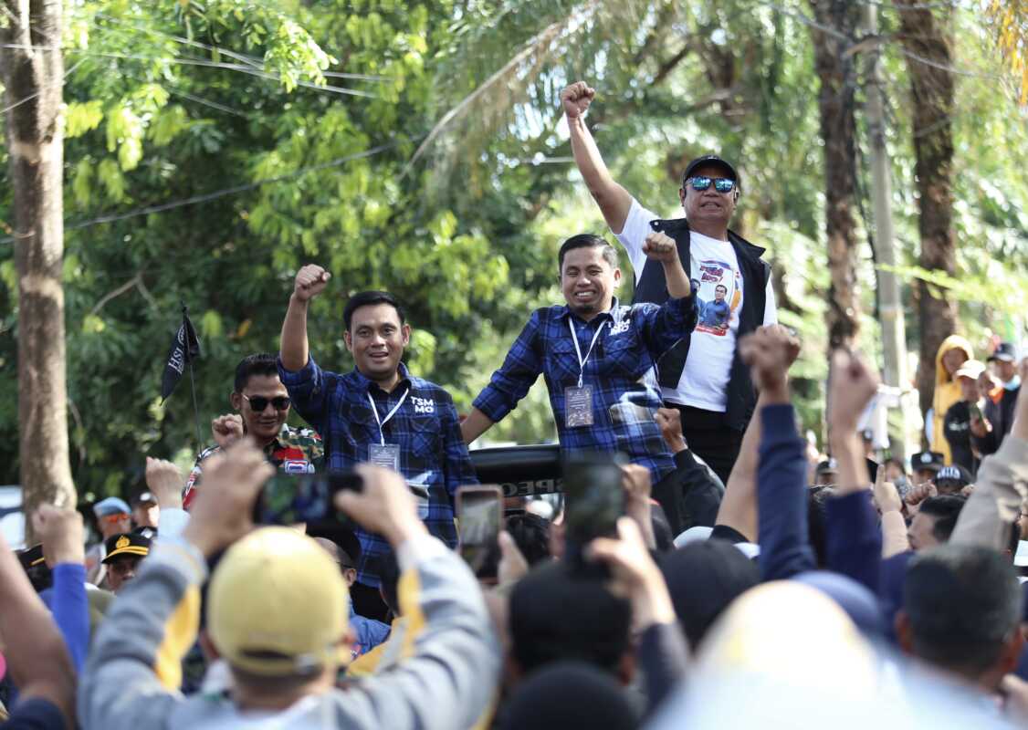PAREPARE, KILASSULAWESI– Ribuan pendukung pasangan bakal calon wali kota dan wakil wali kota Parepare, Tasming Hamid dan Hermanto (TSM-Mo) memadati jalur menuju kantor KPU, Rabu, 28 Agustus 2024.