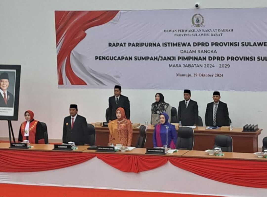 MAMUJU, KILASSULAWESI– Dewan Perwakilan Rakyat Daerah (DPRD) Sulawesi Barat menggelar rapat paripurna istimewa dalam rangka pengucapan sumpah/janji pimpinan definitif pada Selasa, 29 Oktober 2024.