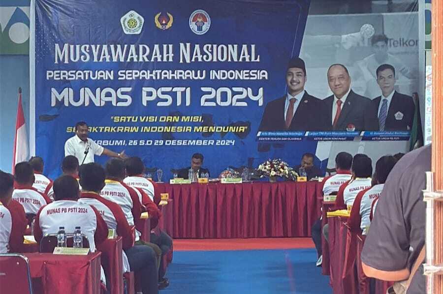 SUKABUMI, KILASSULAWESI— Musyawarah Nasional (Munas) Pengurus Persatuan Sepaktakraw Indonesia (PSTI) versi Ketua Umum yang lama, Asnawi Abd. Rahman, yang digelar di ISTC Sukabumi pada Sabtu, 28 Desember 2024, dinilai penuh rekayasa dan cacat hukum. Pelaksanaan Munas tersebut dikritik karena menabrak semua aturan dan asas sportivitas olahraga yang selama ini terpatri pada setiap insan olahraga.