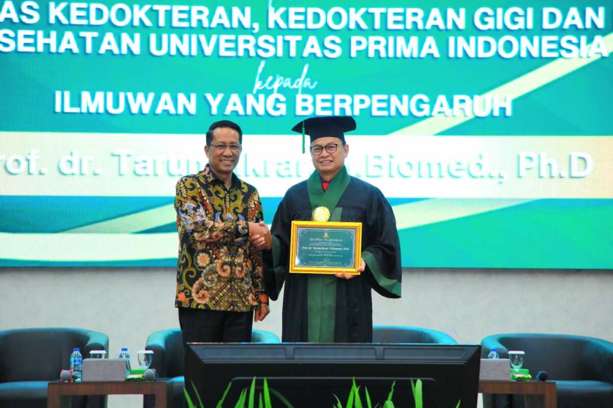 Penghargaan diserahkan langsung Rektor Universitas Prima Medan.