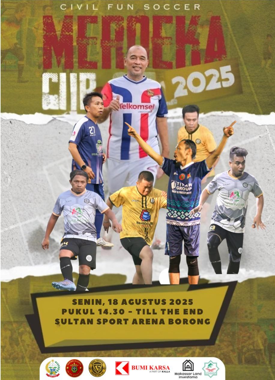 MAKASSAR— Lapangan Sultan Borong Makassar akan menjadi saksi semaraknya Civil Merdeka Cup (CMC) 2025, sebuah ajang olahraga yang digelar untuk memeriahkan Hari Ulang Tahun ke-80 Republik Indonesia sekaligus mempererat tali silaturahmi antar pecinta minisoccer di lingkup alumni Teknik Unhas dan komunitas sepak bola Makassar.