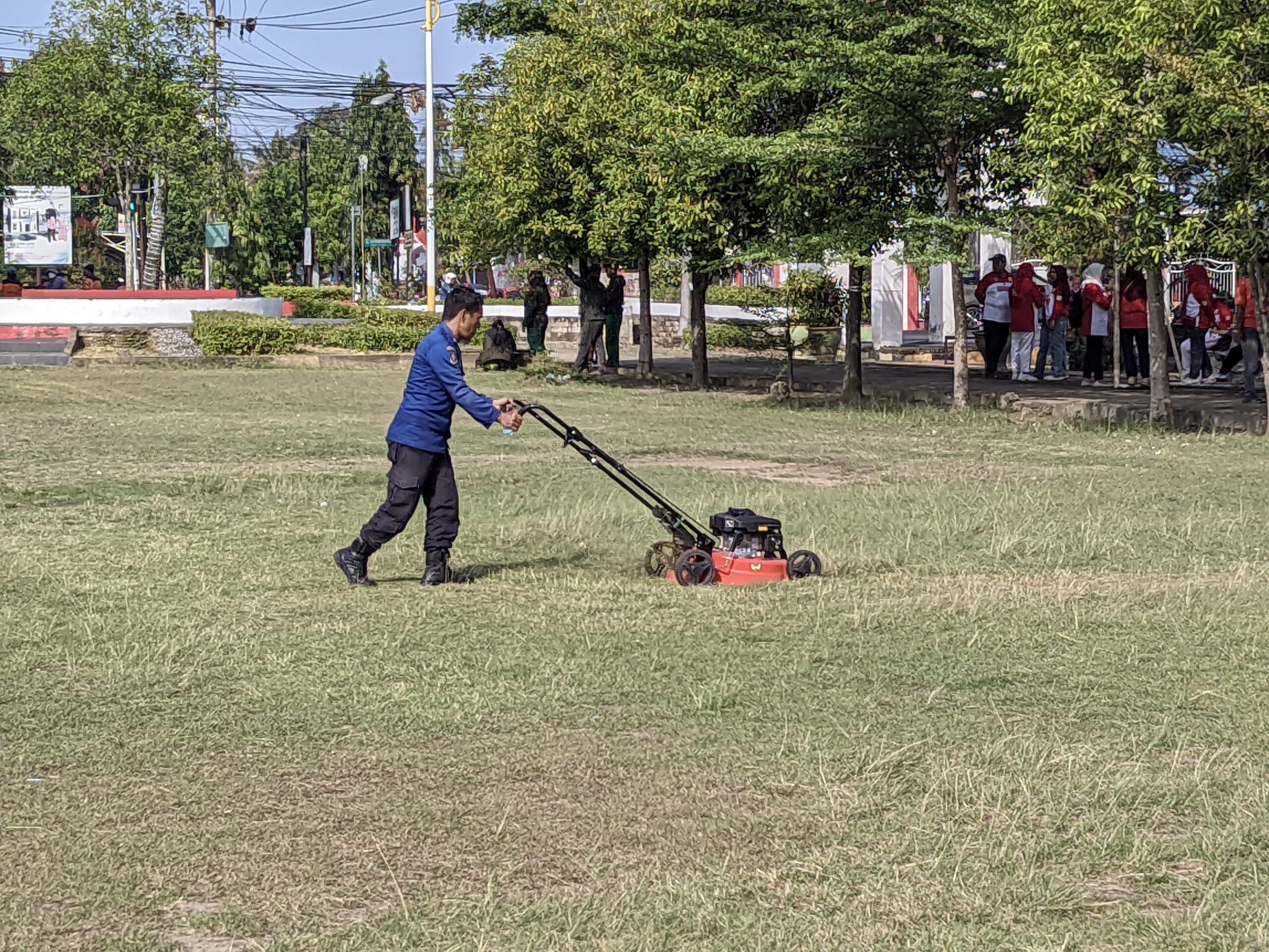 Pada Jumat, 15 Agustus 2025, personel Damkar ambil bagian dalam aksi bersih-bersih menyisir area dan tribun Lapangan Pancasila yang akan dipakai untuk upacara pengibaran dan penurunan bendera pada Ahad, 17 Agustus 2025.