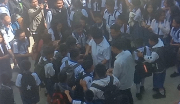 Sesampainya,Bupati Welem Sambolangi menyalami satu persatu siswa dan siswi SMP tersebut.